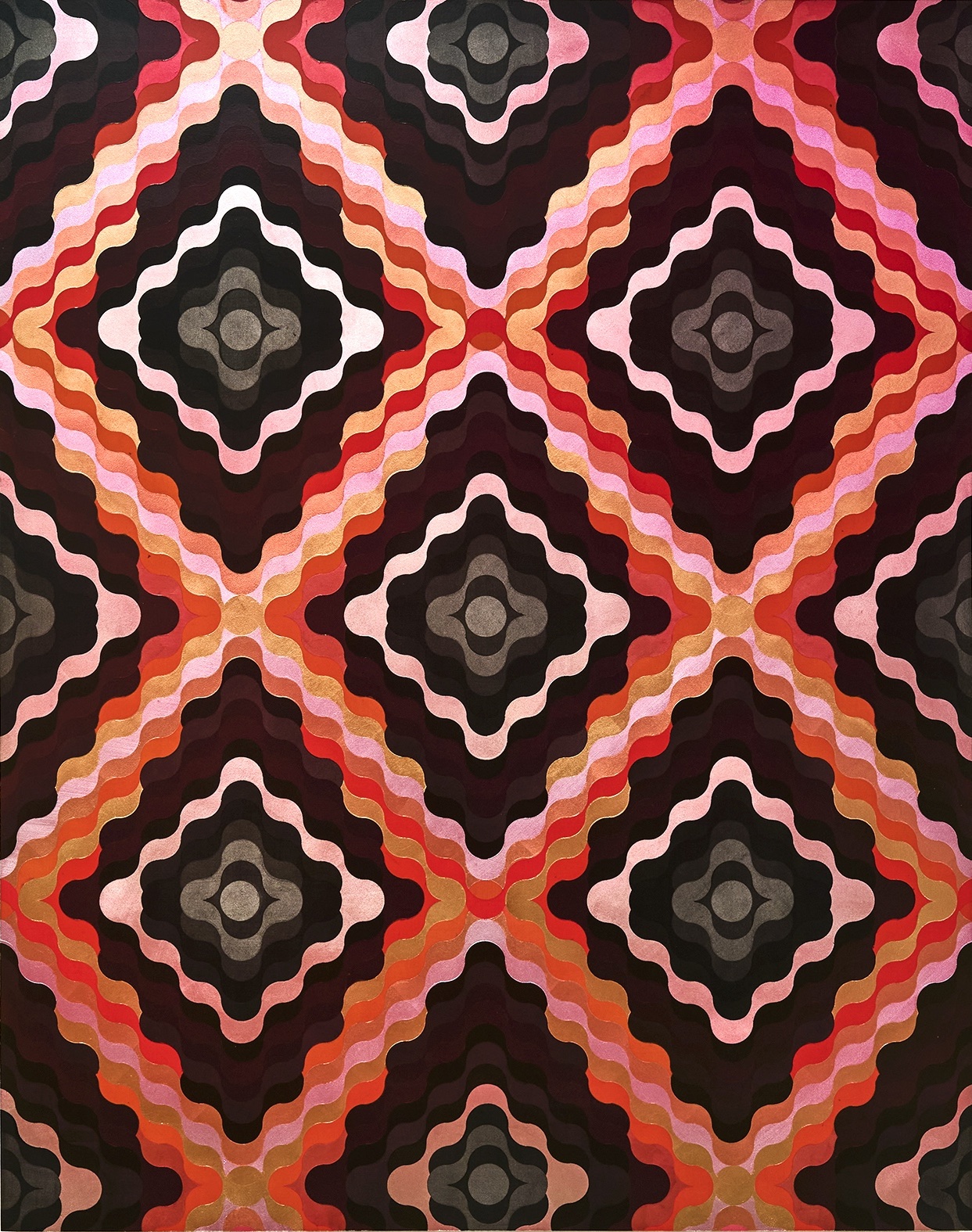 Aluminum, silver, 12k white gold and 18k gold leaf with acrylic glazes on Fabriano paper