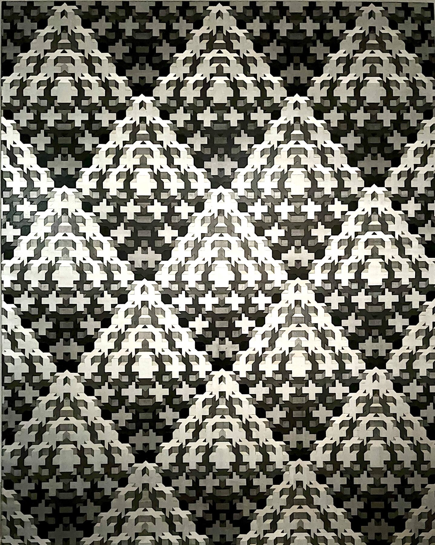 Aluminum and silver leaf w/ acrylic glazes on panel